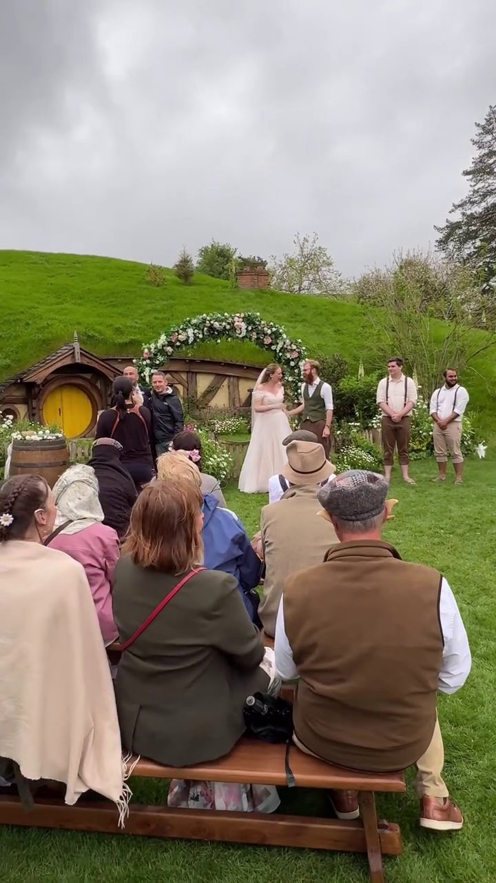 In a video posted on the official TikTok account of Hobbiton, Wood was seen arriving at the wedding venue, where the bride and groom stood at an altar built in front of one of the iconic Hobbit holes. The couple and their guests were all dressed in costumes inspired by Tolkien’s world, creating a magical atmosphere that perfectly matched the setting.